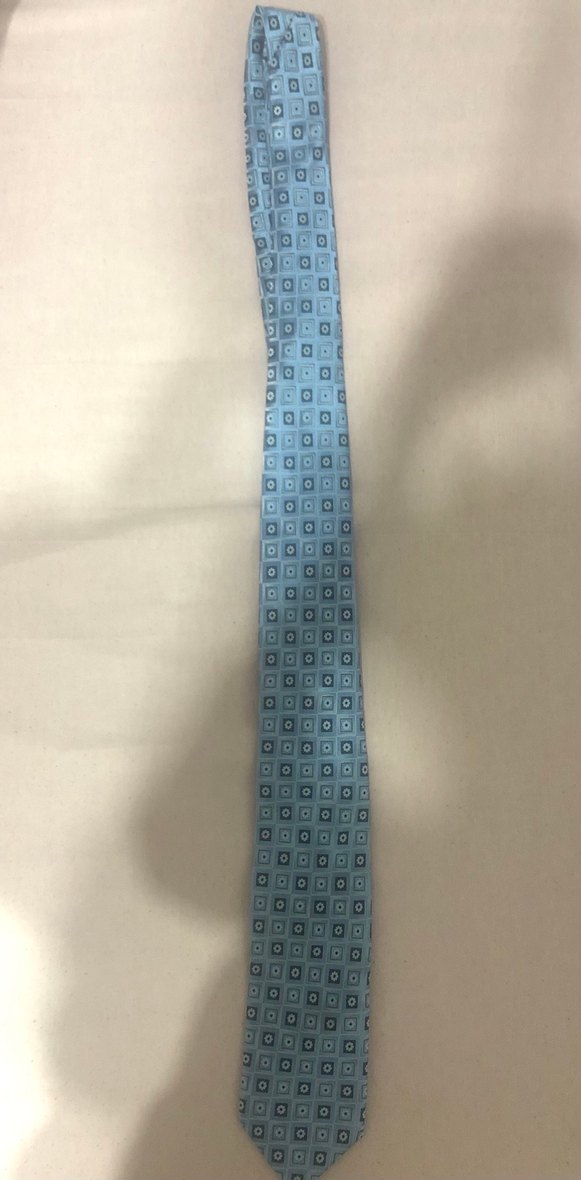 Erkek kravatı, mavi ve gri tonlarda kare desenli çağdaş tasarıma sahiptir. İş ortamları için sade ve temel bir stildir.