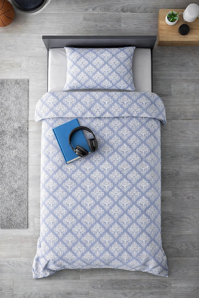 Mavi Gri Desenli Tek Kişilik Nevresim Takımı