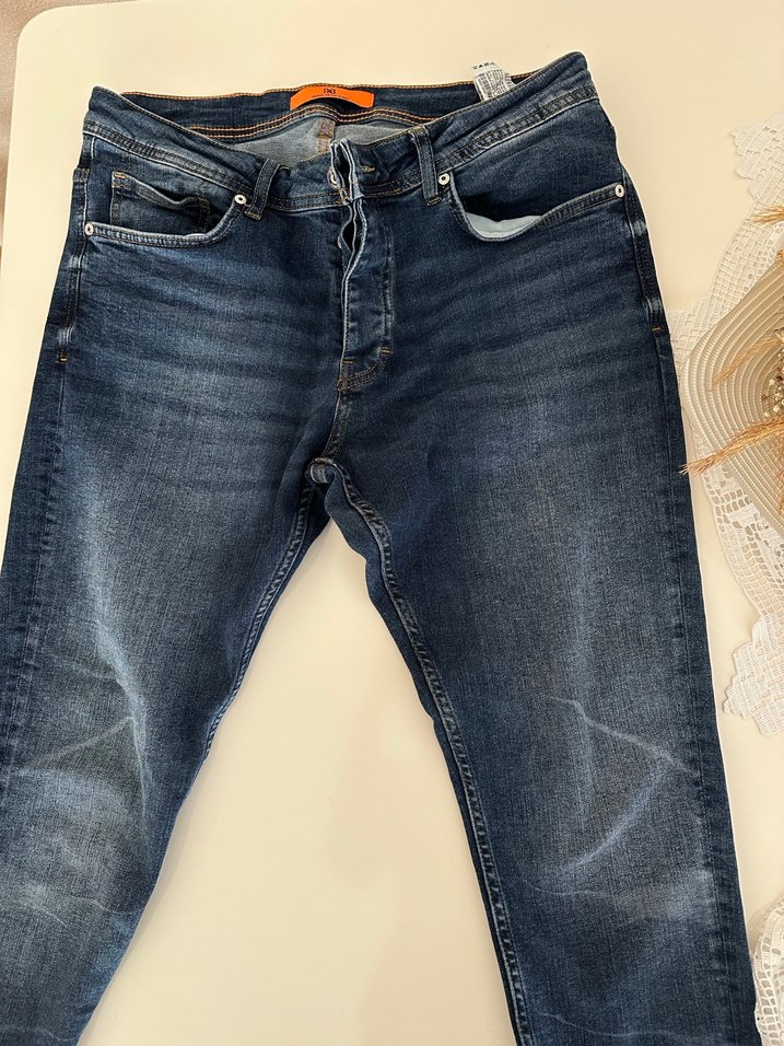 Mavi Gri Düğmeli Erkek Kot Pantolon