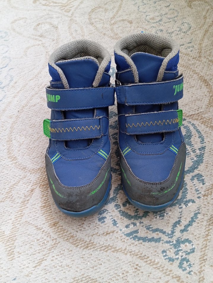 Mavi ve gri kauçuk malzemeden, kolay giyilen cırt cırtlı erkek çocuk spor botları. Trendy rahat sokak stili, sade ve desensiz tasarım sunar.