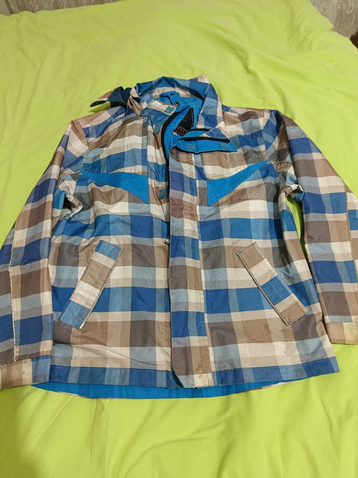 Fermuarlı yakalı, sentetik kumaştan yapılmış mavi ve gri kare desenli, normal midi boyda bol kesim erkek yağmurluğu. ️yırtık sökük yok kullanmaya bağlı yıpranma var kullanıma engel değil yıkanması lazım