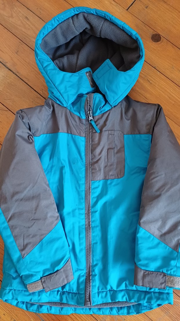 Fermuarlı ve sivri yaka detaylı, mavi ve gri renklerde, düz desenli, yumuşak ve sıcak dokulu erkek çocuk montu. Rahat kesim ve sokak stiline uygun.