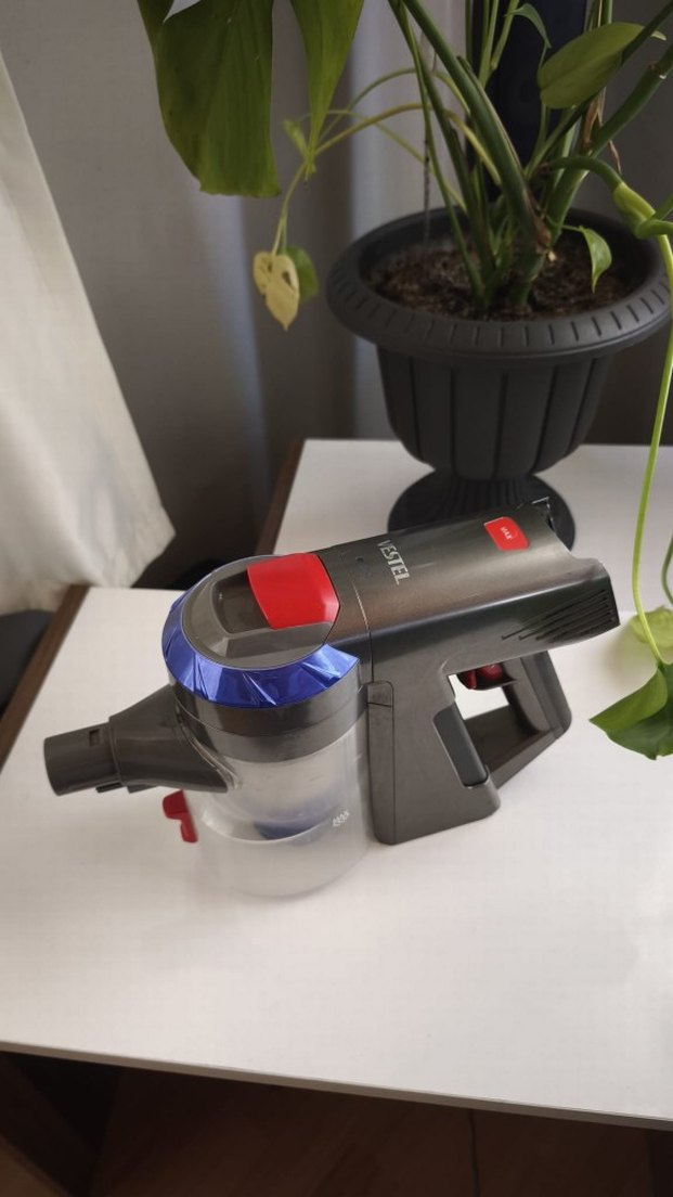 Gri ve mavi renklerde, kullanımı kolay tetik ve şeffaf toz haznesi bulunan kablosuz elektrikli süpürge. Kompakt tasarım ile pratik temizlik sağlar. gövde satılıktır sadece toz haznesinin kapağı yoktur