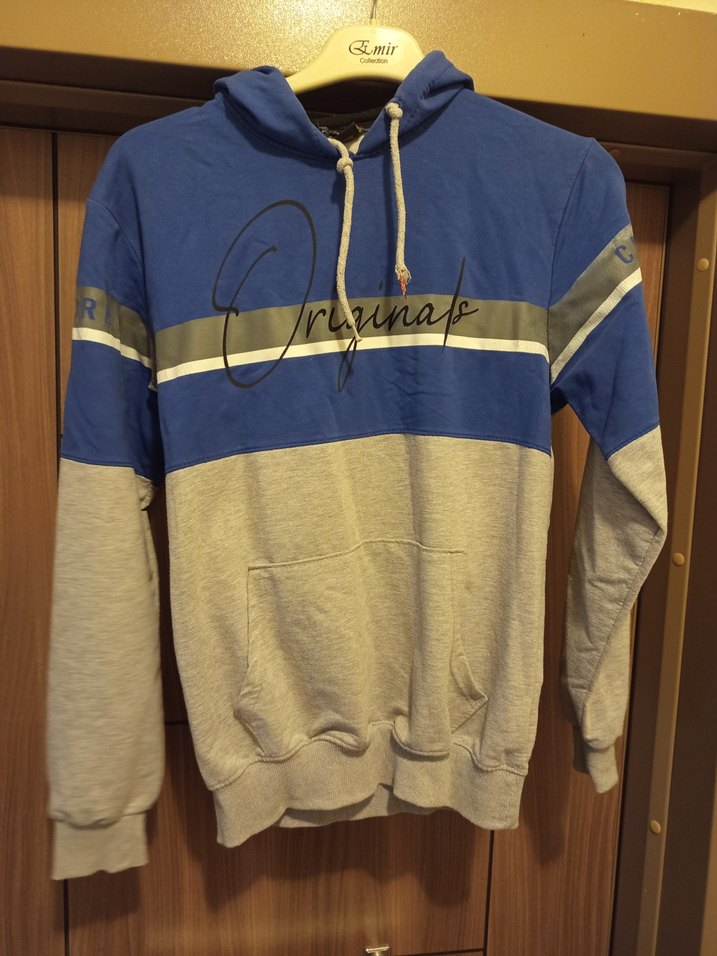 Mavi Gri Kapüşonlu Erkek Sweatshirt