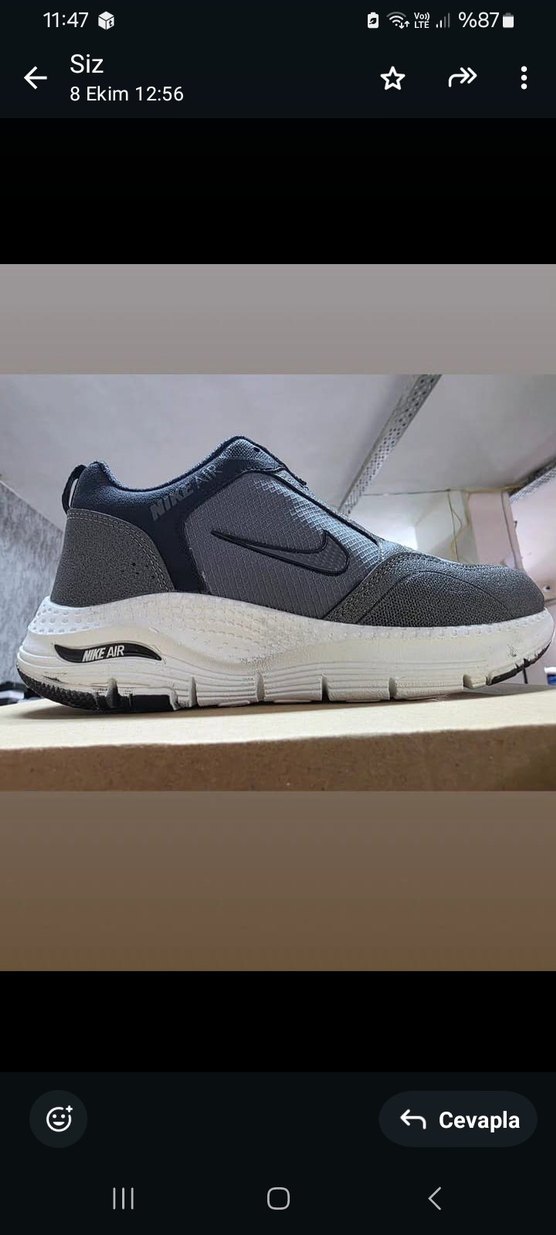 Mavi ve gri baskılı tasarıma sahip Nike Air koşu ayakkabısı, cırt cırtlı kapanış ve kauçuk tabanla sokak stili için uygun su itci