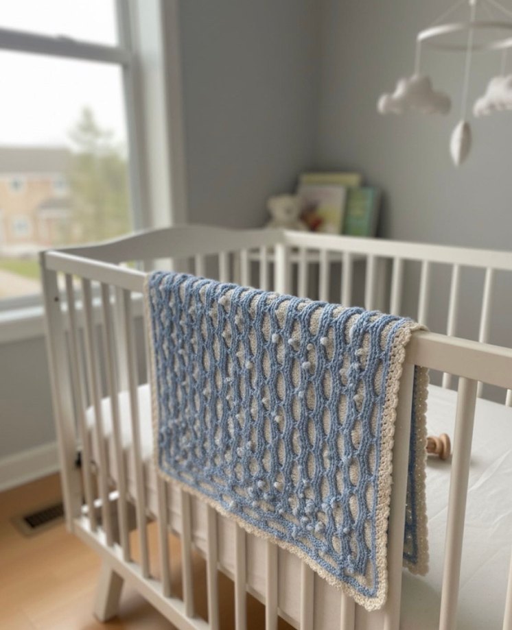 Mavi Gri Örgü Bebek Battaniyesi