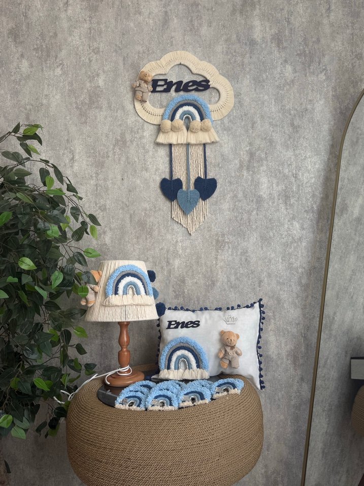 Mavi Gri Örgü Çocuk Uyku Aksesuarları