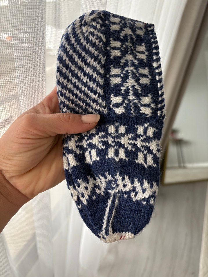 Mavi Gri Örgü ev patik