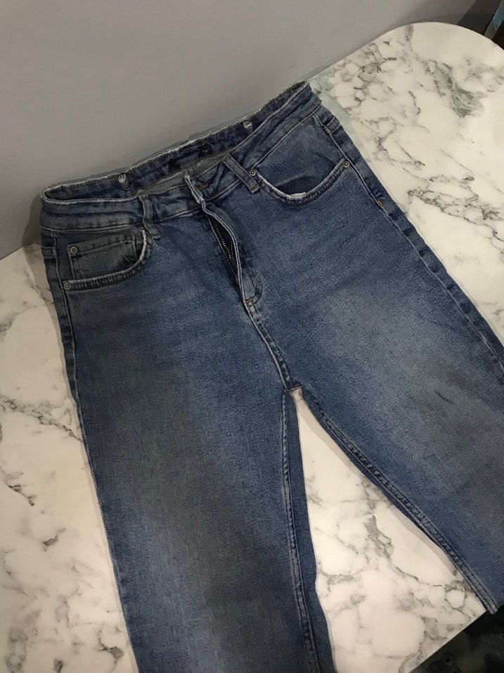 Mavi gri renkte, regular fit ve normal boyda olan bu denim pantolon, minimalist sokak stiliyle gündelik kullanıma uygundur.