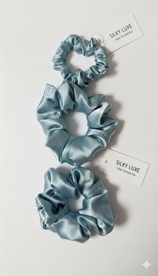 Yumuşak, ipeksi kumaştan yapılmış mavi-gri tonlarda Silky Luxe elastik saç tokaları. Minimalist ve şık tarzda. topuz tokası saç toplama tokası 3 adet ipeksi saten ile saçlarınızı şımartın..