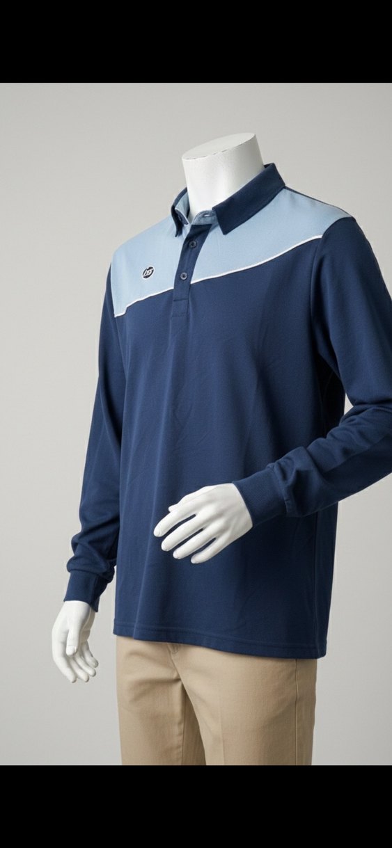 Mavi ve gri tonlarda, uzun kollu, düğmeli yakaya sahip, rahat kesim erkek polo tişört. Yumuşak ve sıcak dokuda kumaştan üretilmiştir.