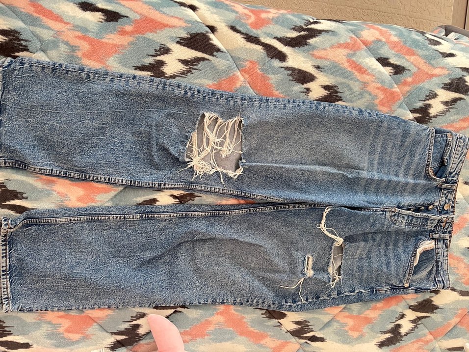 Mavi Gri Yırtık Detaylı Salaş Kot Pantolon