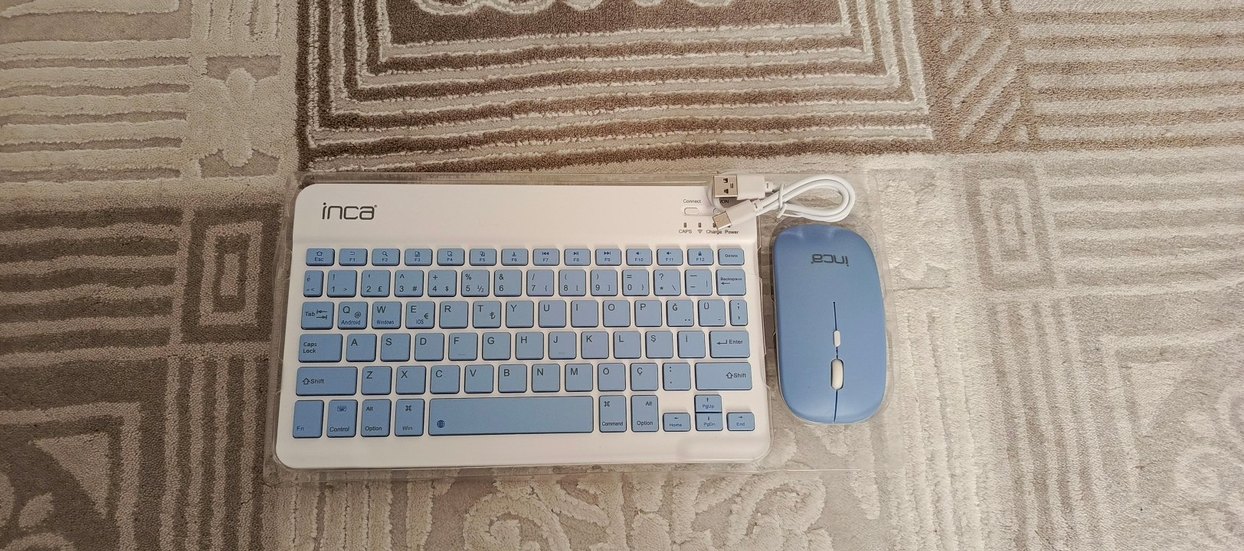 USB bağlantılı, hafif mavi renkli klavye ve fare seti. Kompakt tasarımlı, rahat tuşlara sahip. Yeni sıfır ürün. #inca #klavyeseti #klavye #kablosuzklavye #mavi
