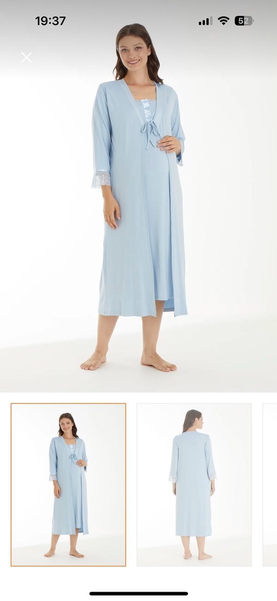 Pastel mavi renkli, uzun kollu, V yakalı, dantel detaylı ve bol kesim hamile ve emzirme geceliği. Uzun boyu rahat kullanım sağlar. Hastanede 1 kere giyildi sadece. Temiz ve hasarsız. Kendi fotoğraflarını ekleyeceğim. Elimde çok fazla yenidoğan ürünleri var takipte kalın mesaj atabilirsiniz.