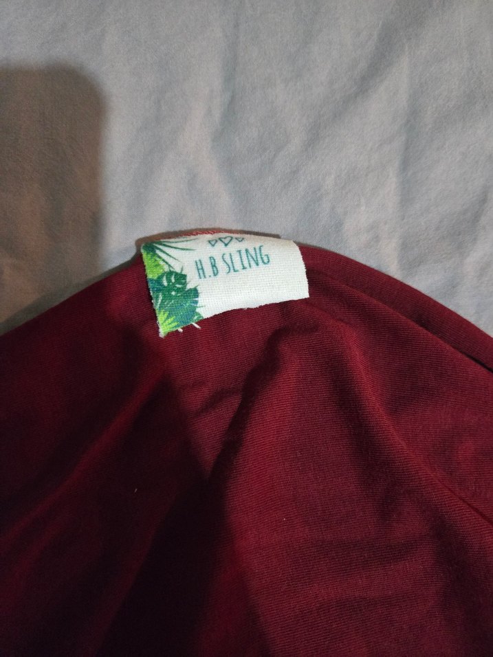 Mavi olan slingte fotoda belirttim küçük bi kaçma var.kullanıma engel değil. bordo ve mavi için farklı ilan açtım. Marka etiketi H.BSLING'li.
