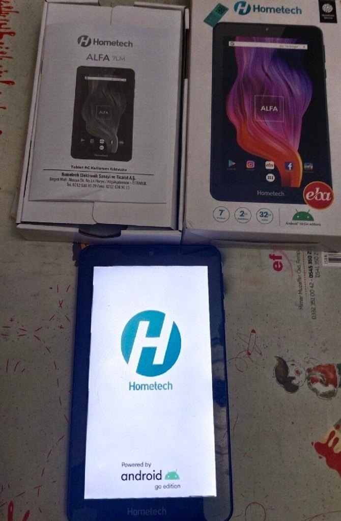 Mavi Hometech ALFA 7 inç tablet, Android Go sürümü ile 2GB RAM ve 32GB depolama kapasitesine sahiptir. Orijinal kutu ve kullanım kılavuzu ile birlikte.