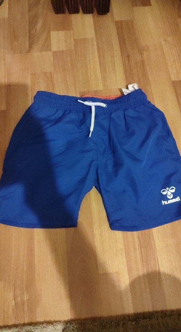 Canlı mavi renkte, kemerli ve bol kesim Hummel erkek mini şort. Plaj ve günlük rahat sokak stili için uygundur.