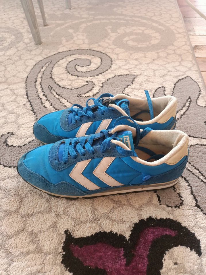 Mavi renkli, bağcıklı ve Velcro detaylı spor ayakkabısı. Düz tabanlı, bağcıklı, kauçuk malzemeden üretilmiştir. 40 numara orjinal orta derece ürün. iç astarda yırtık var dışında yok.
