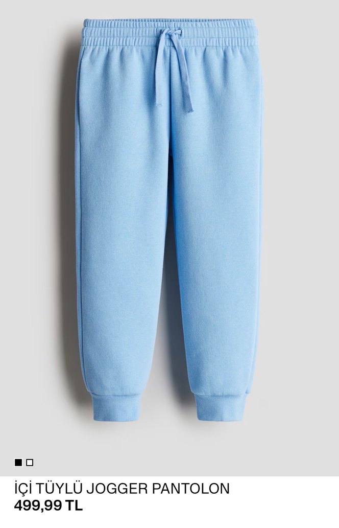 Yumuşak ve sıcak kumaştan, bol kesimli açık mavi jogger pantolon. Rahatlık için elastik bel ve bağcık içerir. Günlük kullanıma uygundur.