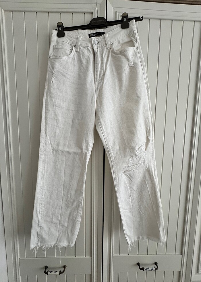 Mavi icon Barselona yirtik detayli 27/27 beyaz jean. Nadir bulunan modeldir. Sadece 1 kere giyildi yikandi. Ürün tertemizdir yeniden farksizdir. Herhangi bir kusuru yoktur.