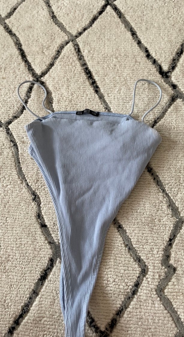 Yumuşak mavi renkte ince askılı, hafif çizgili dokulu bebek slingidir. Rahat taşıma sağlar. bodysuit yanları dekolteli