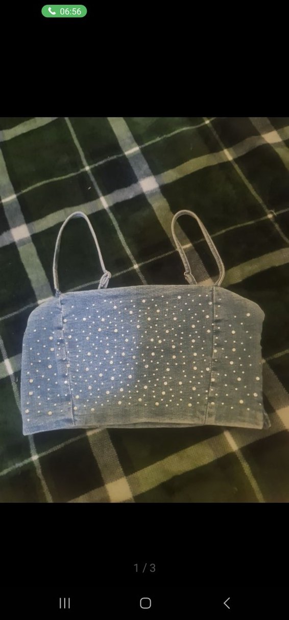 Mavi renkte, inci detaylı midi uzunlukta street wear tarzı, desen içermeyen rahat bir büstiyerdir. fb Sister Almanya'daki alindi