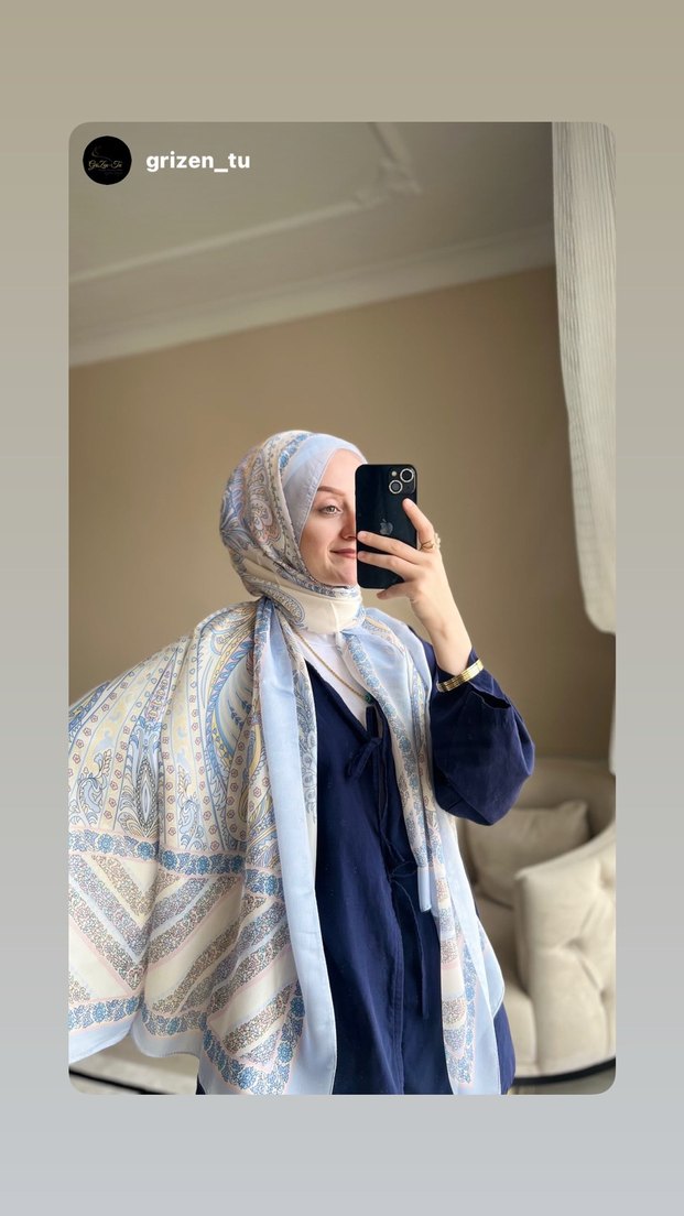 Hafif mavi tonlarda, ipek dokulu ve bohem tarzda drapeli kadın şal. Yumuşak kumaşıyla zarif ve mütevazı bir görünüm sağlar.