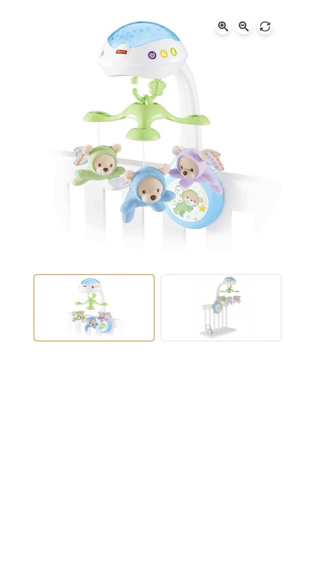Yıldız desenli açık mavi kubbeye sahip Fisher-Price müzikli oyuncak, çeşitli sesler çıkaran butonlarla çocukları eğlendirir.