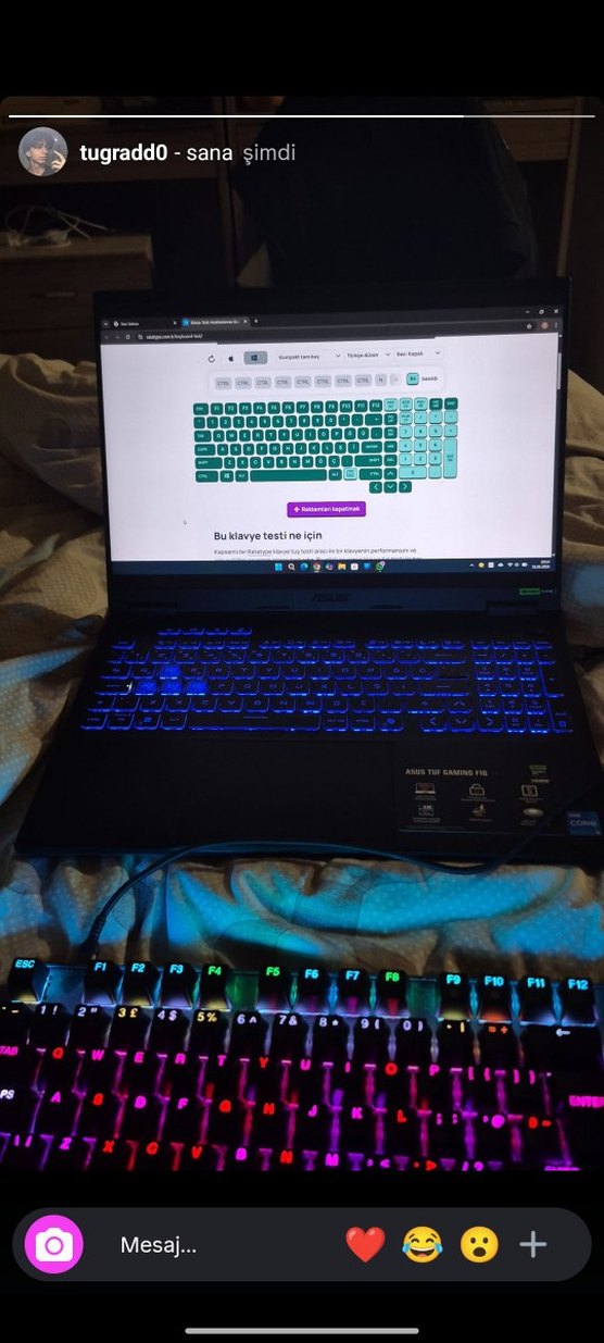 Mavi ışıklı, oyun için uygun aydınlatmalı klavyeye sahip laptop. Klavye testine uygundur.