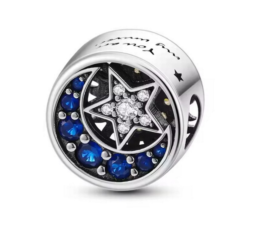 Mavi İşlemeli Boncuklu güneş Yıldız Ay Charm