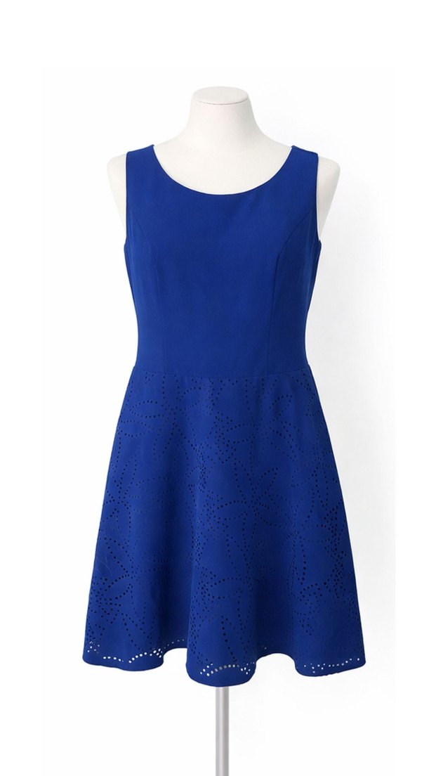 Mavi renkli, kolsuz ve midi boyda bu elbise, işlemeli dantel detayları ve yuvarlak yaka ile sade ve şık bir görünüme sahiptir. Rahat ve uyumlu kesimlidir.