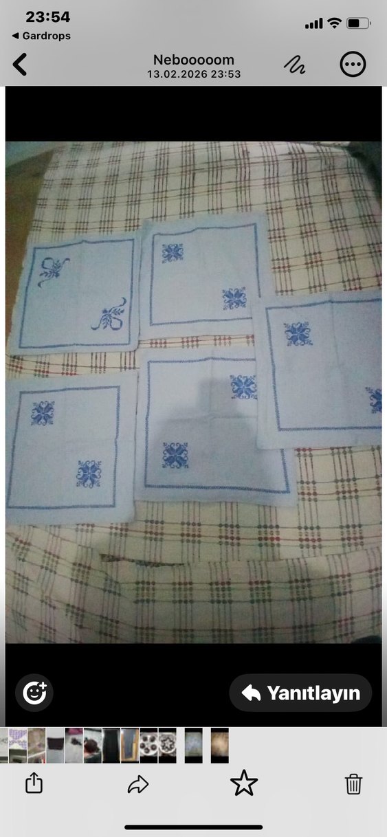 Hafif mavi işlemeli, geleneksel desenlere sahip kırlent setidir. Kumaş üzerinde zarif mavi nakış detayları bulunur.
