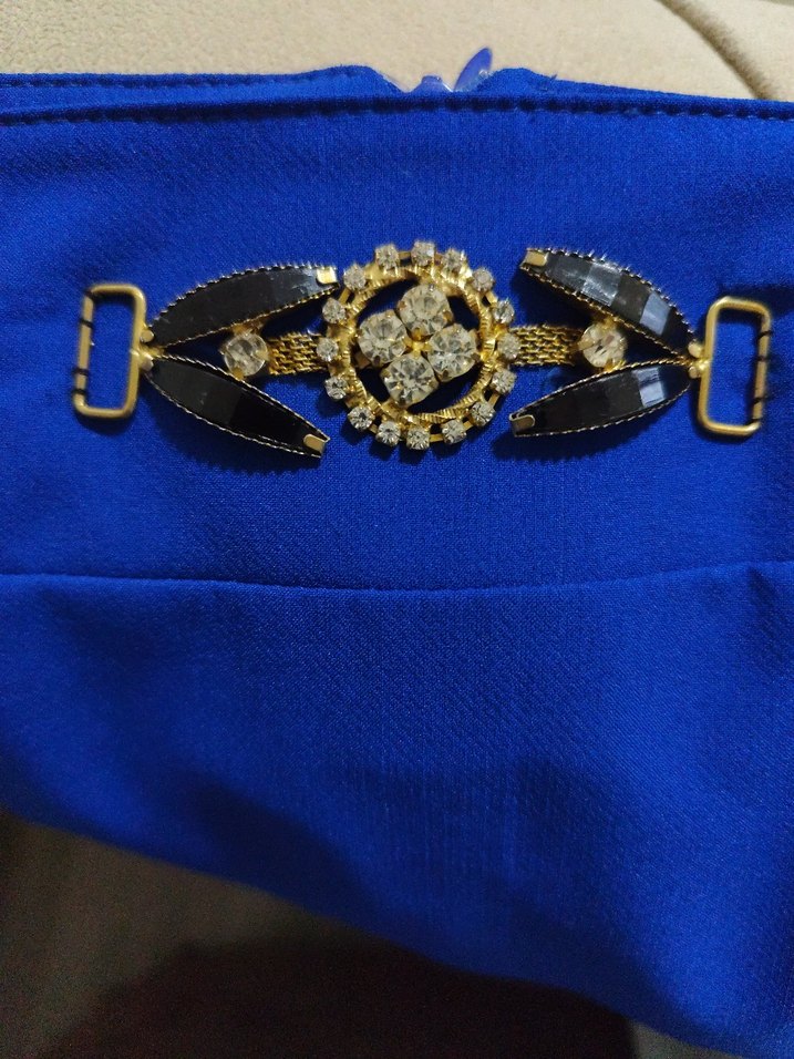 Renkli taşlarla süslenmiş, tokalı mavi işlemeli vintage broş. Düğünler için uygun bir aksesuar.bir kez dugunde gıyıldı