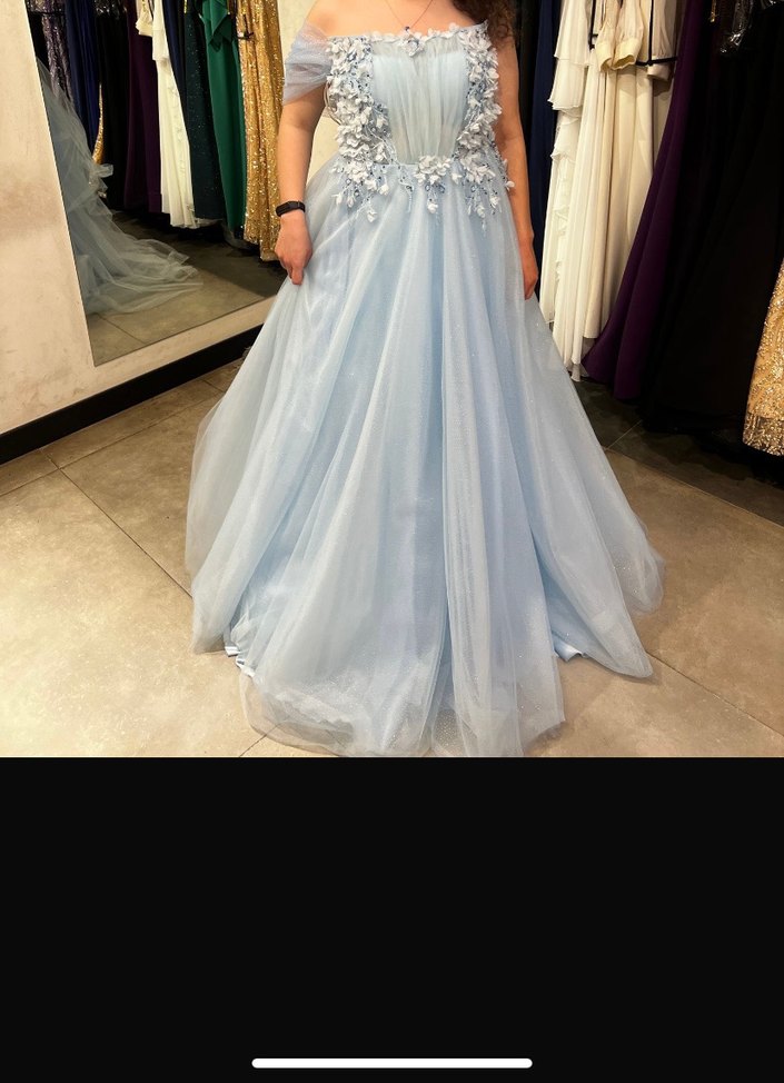 Açık mavi, straplez, işlemeli ve drapeli detaylara sahip uzun abiye elbise. Klasik ve modern tarzın birleşimi, düğünler için uygun. Nişan elbisemdi. Kuru temizleme ihtiyacı var. Kolları ben eklettim arkası korseli 42 beden ama 38 e kadar olacağını tahmin ediyorum. Alan kişinin kuru temizleme yaptırması gerekiyor. 11.000 tl mağaza satış fiyatı. Kuru temizleme ücretini de düşerek fiyat yazdım.