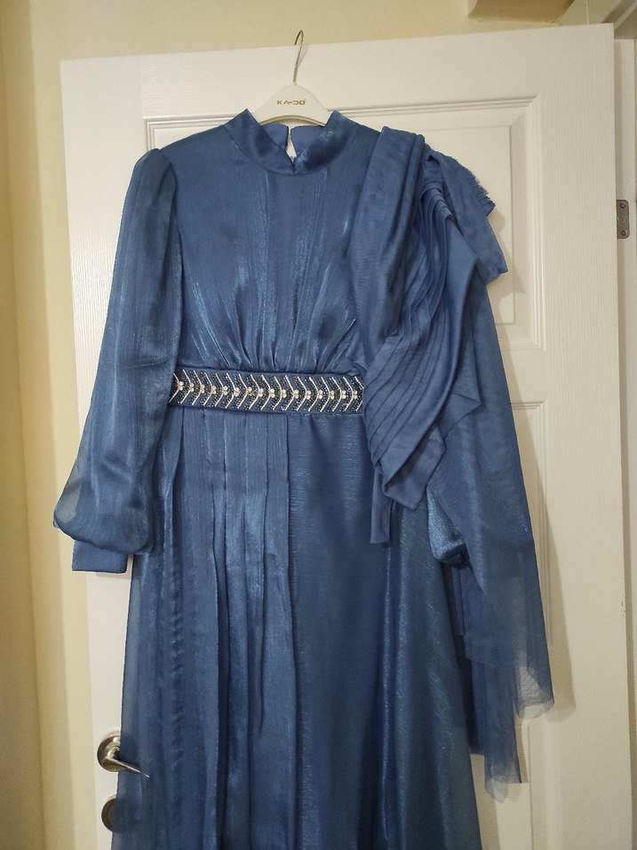 Ürün 1.45 boyunda 46-48 beden uyumlu beli kemer detaylı tamamı Janjan kumaştan elbisdir.Yanında özel dikim hazır şal hediye olarak gönderilecektir.Ürün bir kez kullanılmıştır.