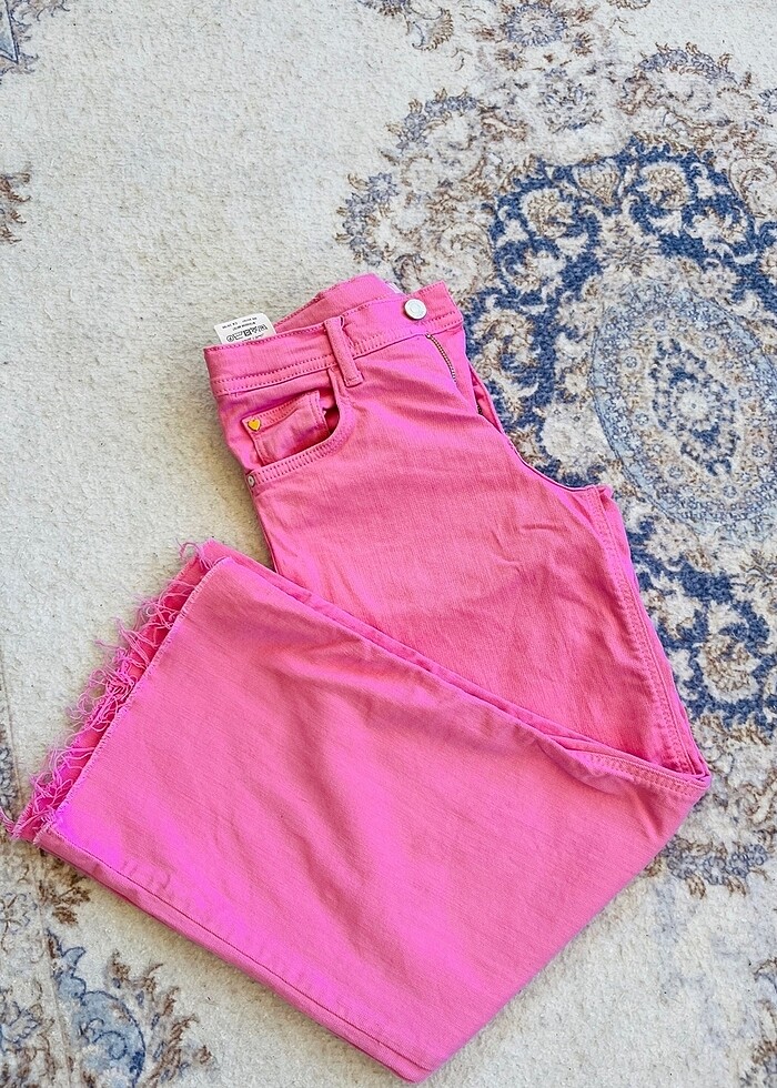 Pembe renk mavi marka kot pantolon çok yeni iki kere giyildi tertemiz kusursuz son fotoğrafta rengi ve normal fiyatı mevcut kaçırmayın