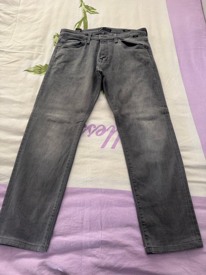 Kot kumaştan yapılmış, tokalı gri regular fit erkek pantolon. Günlük kullanım ve sokak tarzı için uygun, normal boyda ve desensiz.