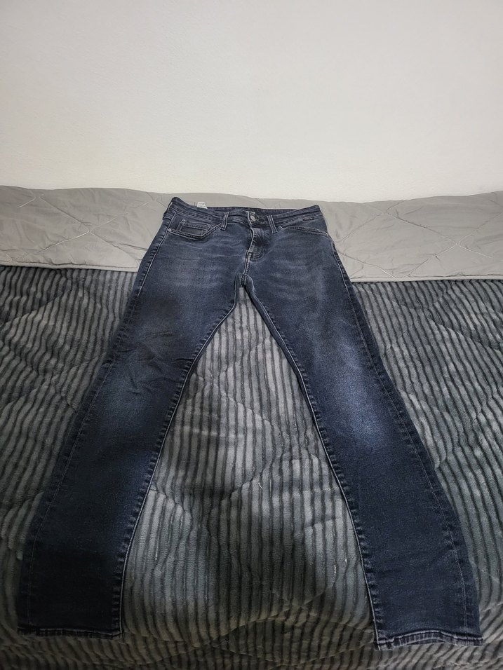Gri renkli, normal boyda ve regular fit erkek denim jean pantolon, tokalı detaylıdır. Günlük sokak stiline uygundur.