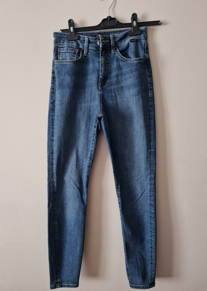 Mavi jeans 26 beden . Tam 36. Pacalar dar. Arkada sağ bacakta küçücük bir beyaz leke bile olmayan bir şey var. Onemsiz