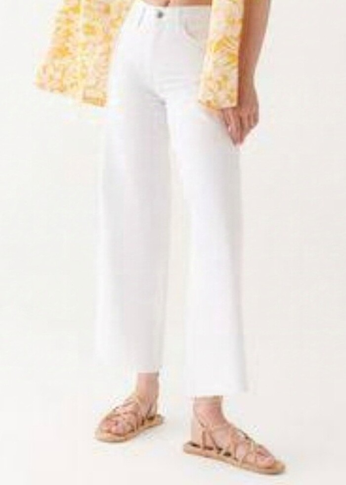 Urun çok az kullanıldı. kilo aldigim için satıyorum. wide leg High rise model. 27/27 beden boy. iki yerinde çizik şeklinde leke var, fotoğraflarda mevcut. yikadiktan sonra fark ettiğim için leke cikariciyla falan denemedim çıkar mı çıkmaz mi bilemiyorum.
