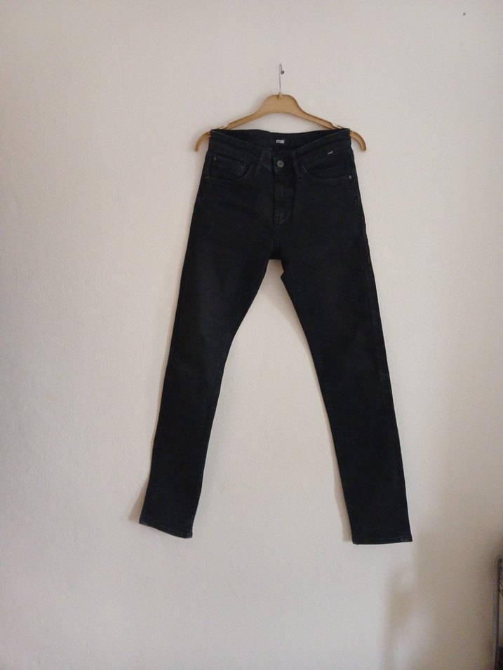 Erkekler için siyah denim jean, regular fit ve normal boyda. Günlük kullanım için rahat ve şık bir sokak tarzı sunar. hiçbir sorun yok Çok az kullanıldı