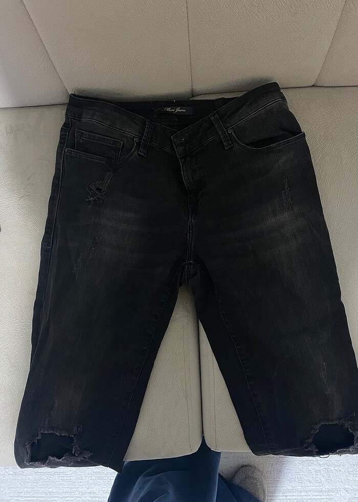 Beli daraltılmıştır. Ancak daha sonra açılabilmesi için parça hala içerdedir, kesilmemiştir. Yüksek bel değildir. 40 - 38 bedene rahatlıkla olur, yumuşak bir kumaşı vardır, rahattır. Herhangi bir deforme yoktur