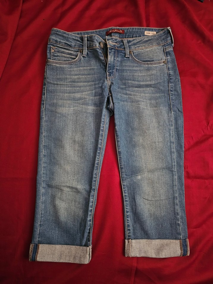 Mavi jeans markalı Açık mavi renkli, kemerli detaylı, midi boy, dar kesim kadın denim kot pantolon. Rahat ve gündelik sokak stili için uygundur. İyi durumda.