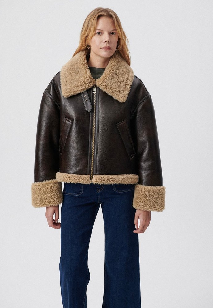 Mavi Jeans Kahverengi Kürklü Deri Kadın Ceket
