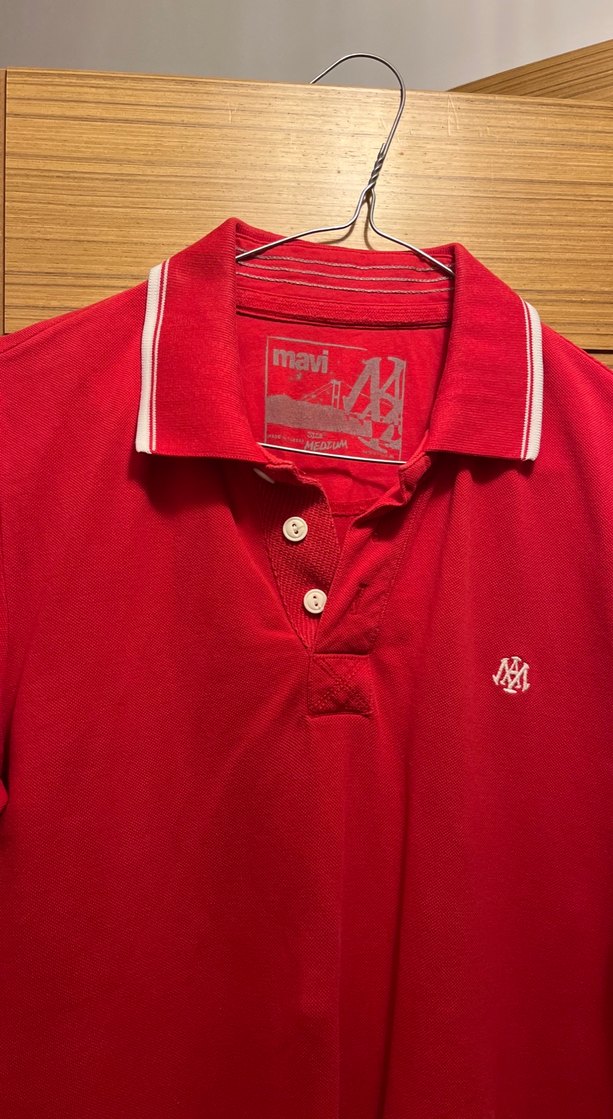 Pamuk kumaştan üretilmiş, düğmeli yakalı ve baskılı logo detaylı, parlak kırmızı renkli, fitted kesim erkek polo tişört. Günlük rahat kullanım için uygundur. Az ve temiz giyildi. Sorunu yok.