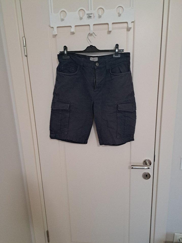 lacivert kumaştan, kemerli ve bol kesim erkek şort. Sokak stiline uygun, dış mekan kullanımı için uygun, cepli ve kısa boyda. bel 42cm boy 53cm