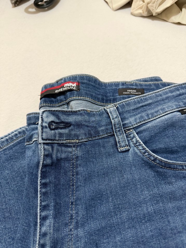Mavi Jeans markalı hasan model geniş kesim Mavi renkte, düğmeli ve regular fit kesime sahip erkek denim jean. Günlük kullanım için uygun, normal boyda ve sade tasarımlı, yaklaşık 125 kilo ile uyumlu en 50 cm, boy 105 cm’dir.bir bedene sahiptir.İade yoktur.