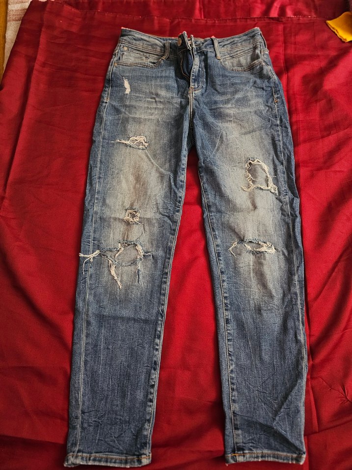 Mavi Jeans, yırtık detaylı, rahat kesim ve kemerli denim pantolon. Mom jean, 26 beden Günlük kullanım için normal boyda, sokak stiline uygun.