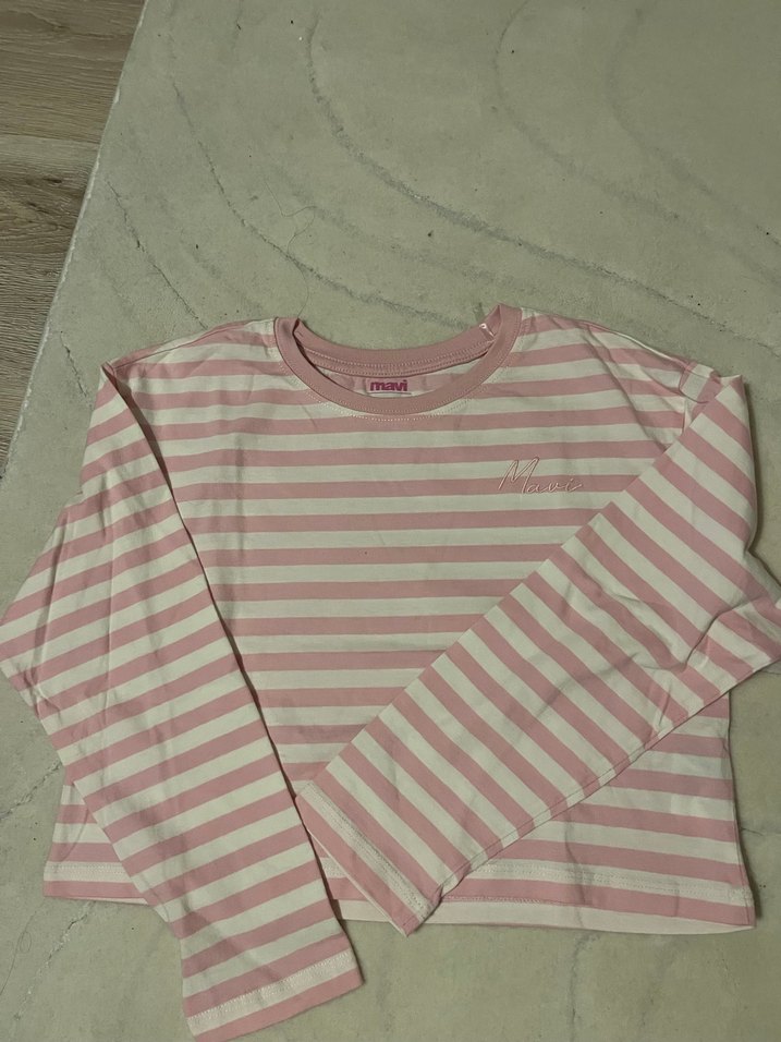 Mavi jeans orjinal Kız Çocuk Pembe Çizgili Uzun Kollu Tişört