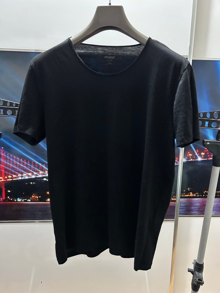 Siyah renkli, yuvarlak yaka ve kısa kollu erkek tişörtü. İpeksi kumaştan üretilmiş, rahat kesimli ve desensizdir. Günlük kullanım için uygundur. L beden